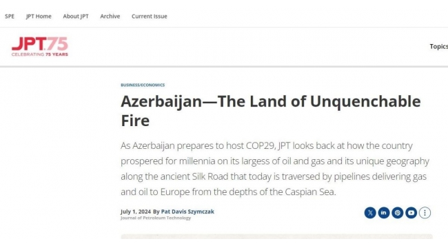 "Journal of Petroleum Technology": Azərbaycan - sönməz odlar yurdu