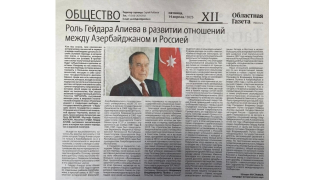 Sverdlovskun rəsmi qəzetində Ümummilli Liderə həsr olunmuş məqalə dərc edilib