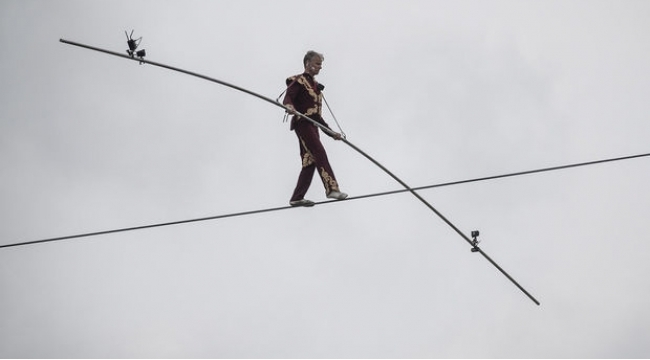 Macarıstanlı sirk ustası kəndir üzərində Dunay çayını keçdi –