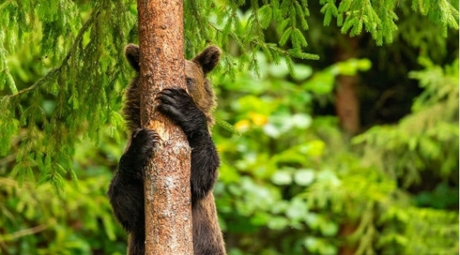 Yuvası yanan ayı yanğınsöndürənlərin yanına gedib