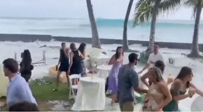 Havayda toya gələn qonaqları nəhəng dalğa “yudu”