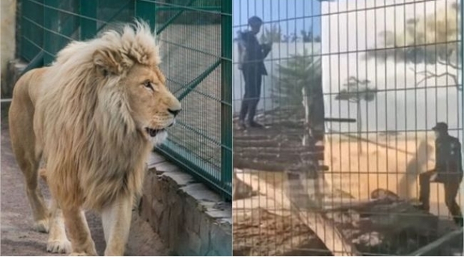 İçkili şəxs şirlərin qəfəsinə girib -