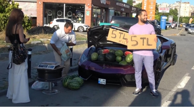 “Lamborghini” ilə qarpız satırdı: Polis cərimələdi -