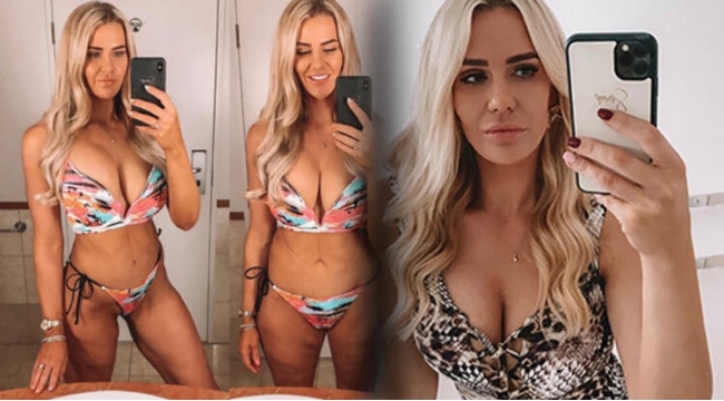 Müğənninin sinəsi bikiniyə sığışmadı -