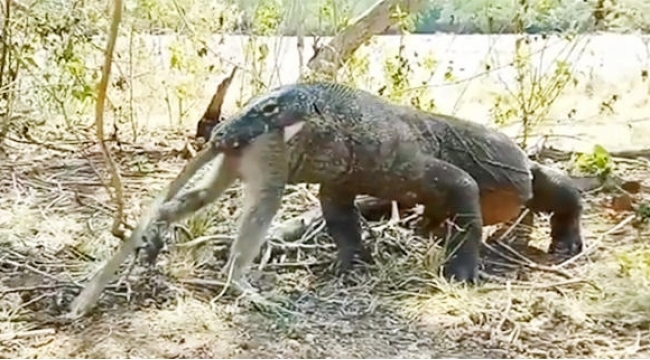 Nəhəng kərtənkələ meymunu diri-diri uddu