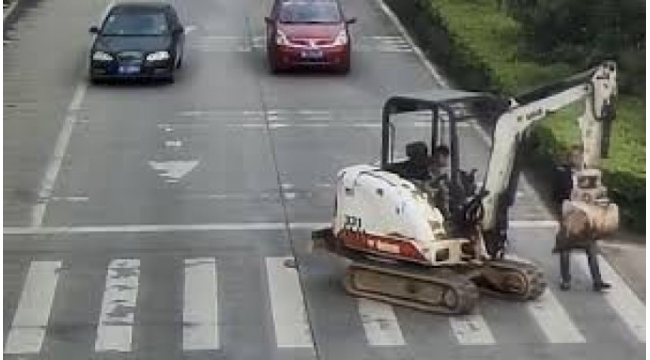 Ata 6 yaşlı oğluna nəqliyyatın gur vaxtı ekskavator sürməyi öyrədib