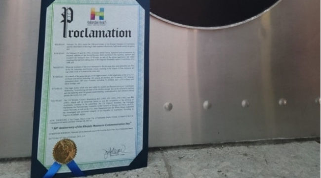 Amerikalı mer Xocalı soyqırımının ildönümü ilə bağlı bəyannamə imzalayıb