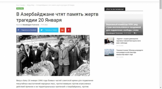 Özbəkistan portalları 20 Yanvar faciəsi ilə bağlı məqalələr yayıb