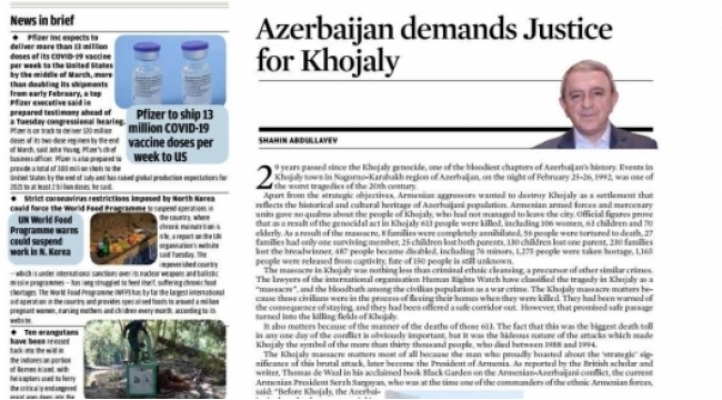 Xocalı soyqırımının ildönümünə həsr olunmuş məqalə