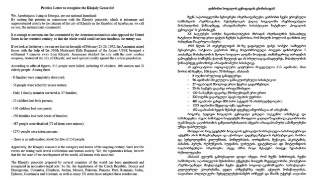 Soydaşlarımız Gürcüstan parlamentini Xocalı soyqırımını tanımağa çağırıb