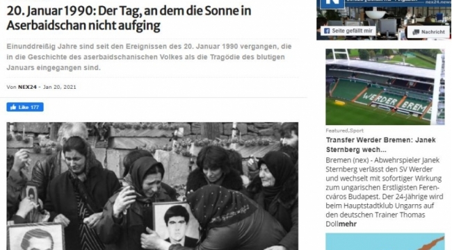 Almaniya saytı 20 Yanvar hadisələrindən yazıb