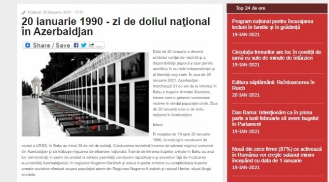 Rumıniya KİV-ləri 20 Yanvar faciəsi barədə məqalələr yayıb
