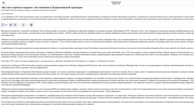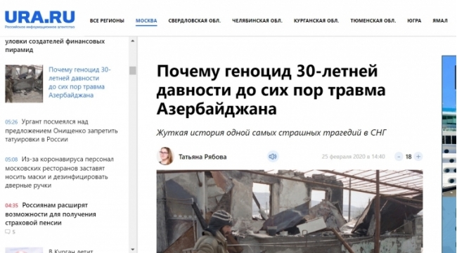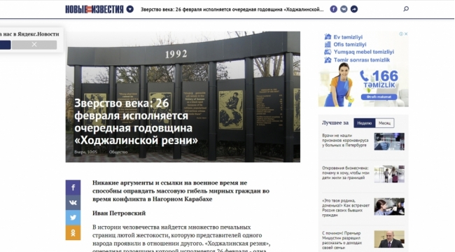 Rusiyanın informasiya agentliyi Xocalı soyqırımı barədə məqalə yayıb