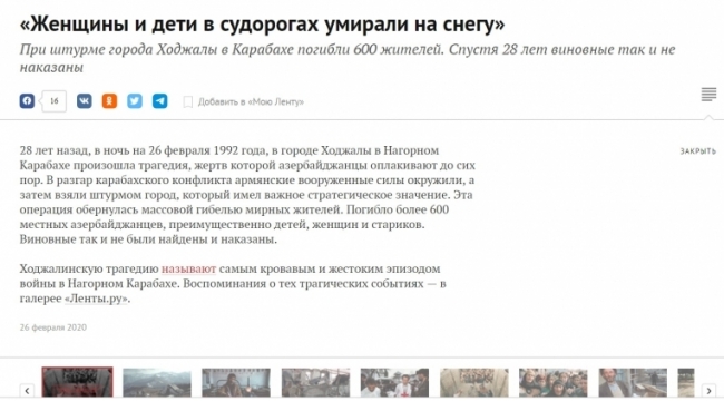 Xocalı faciəsi barədə xəbər və qurbanların şəkilləri dərc edilib -
