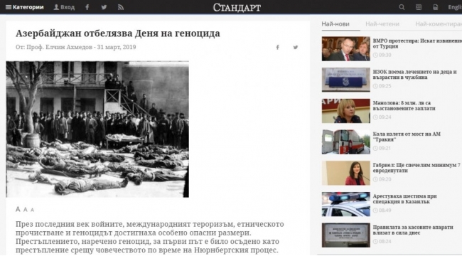 “Standart” qəzeti Elçin Əhmədovun 31 mart soyqırımı ilə bağlı məqaləsini yayıb