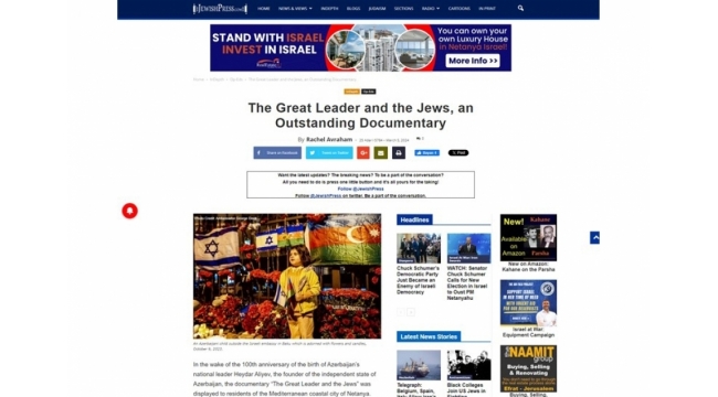 ABŞ mətbuatı yəhudi xalqının Heydər Əliyevə olan rəğbətindən yazıb