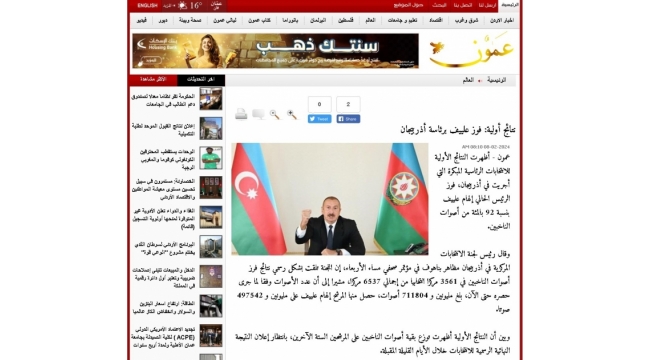 İordaniya mediası: Azərbaycan demokratiya yolunda yeni səhifə açır