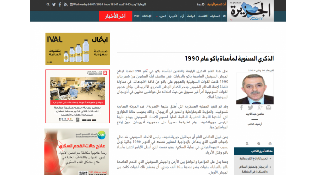 Səudiyyə Ərəbistanın nüfuzlu qəzeti 20 Yanvar faciəsindən yazıb