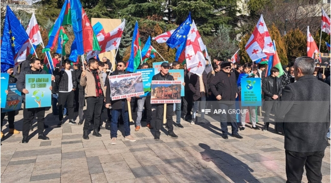 Azərbaycanlılar Avropa İttifaqının Tbilisi ofisinin qarşısında aksiya keçirirlər -