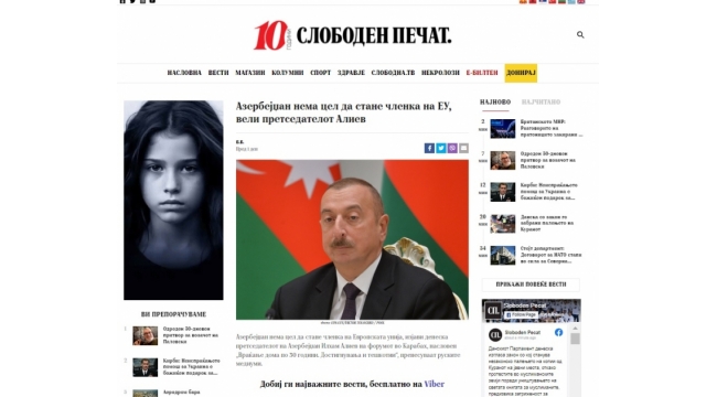 Makedoniya KİV-ləri Azərbaycan Prezidentinin beynəlxalq forumda çıxışını geniş işıqlandırıb