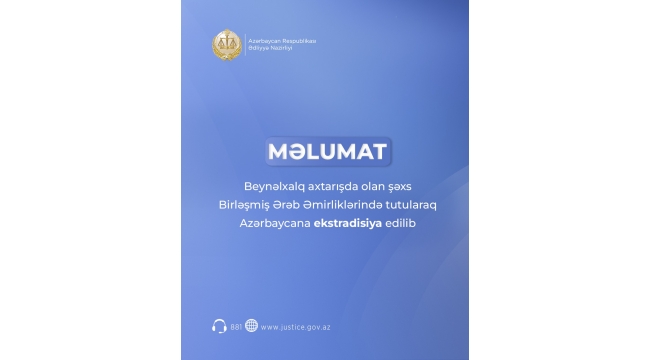 Beynəlxalq axtarışda olan şəxs Birləşmiş Ərəb Əmirliklərində tutularaq Azərbaycana ekstradisiya edilib