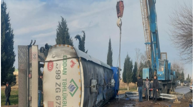 Samuxda yanacaq daşıyan maşın aşıb, 40 ton benzin yola dağılıb -