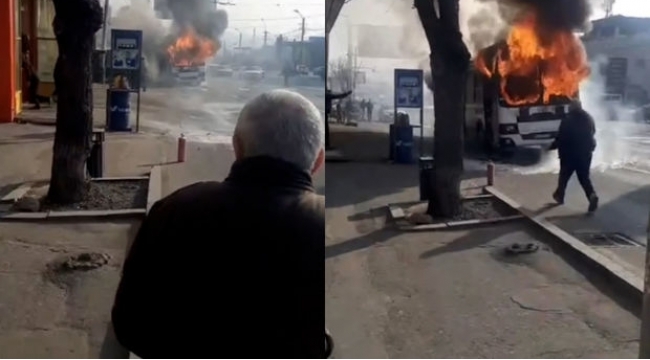 İrəvanda sərnişinlərlə dolu trolleybus alova büründü -