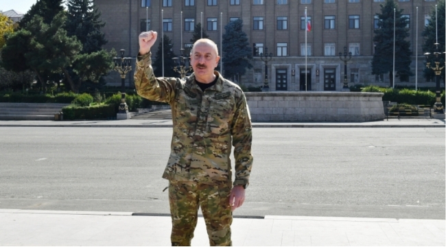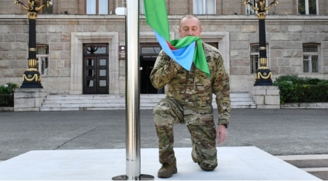 Prezident İlham Əliyev Xankəndi şəhərində Azərbaycan Respublikasının Dövlət Bayrağını ucaldıb və çıxış edib -