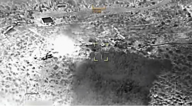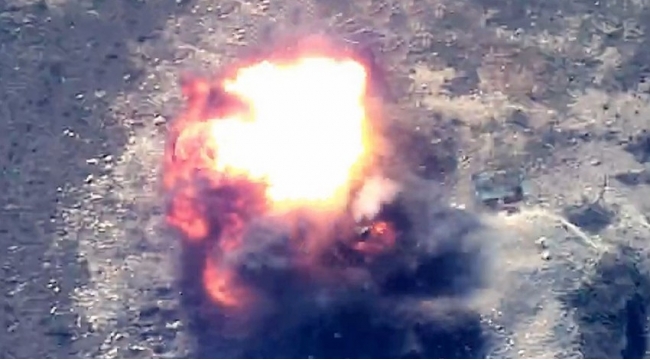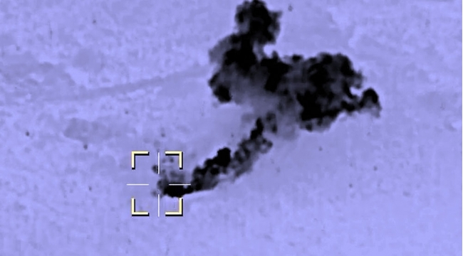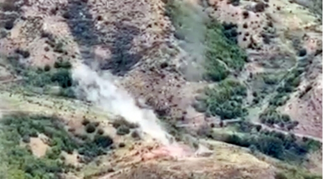 Ermənistan silahlı qüvvələrinin birləşmələrinə məxsus növbəti sığınacaq və döyüş texnikasının məhv edilməsi anı -