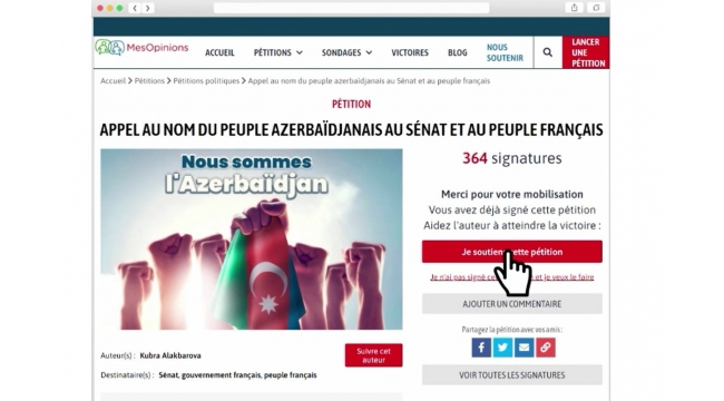 Fransa Senatında ölkəmizə qarşı qətnaməyə etiraz olaraq petisiya hazırlanıb -