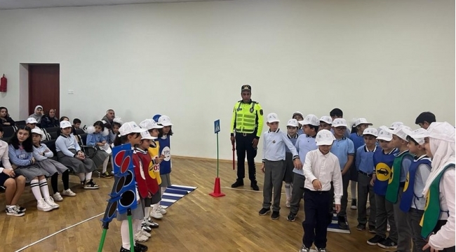 Bakı polisi məktəblilərə yol hərəkəti qaydaları ilə bağlı təlim keçib