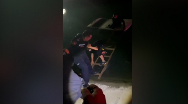 Sürücü və yanında olan bir nəfər sərnişin polis əməkdaşları tərəfindən kanaldan çıxarılıb -