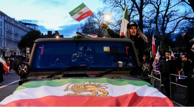 Londonda etirazçılar səfirliyinin binası üzərindəki İran bayrağını dəyişdiriblər