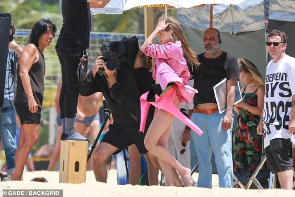 Publika.az xarici mətbuata istinadən xəbər verir ki, model qəribə geyimi ilə isti Rio de Janeyro günəşinin altında uzun müddət obyektivlərə poza verib. Hadidin kamera arxası kadrları sosial şəbəkədə yayılıb.