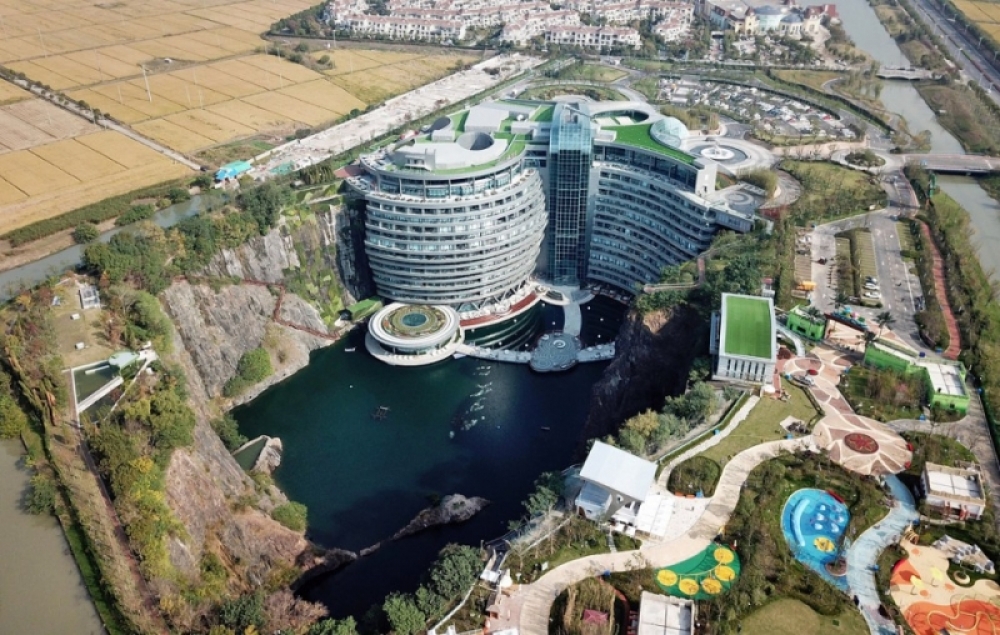 Çinin Sunszyan şəhərində istifadə edilməyən karyerin yerində tikilən Intercontinental Shanghai Wonderland otel kompleksinin açılışı olub.