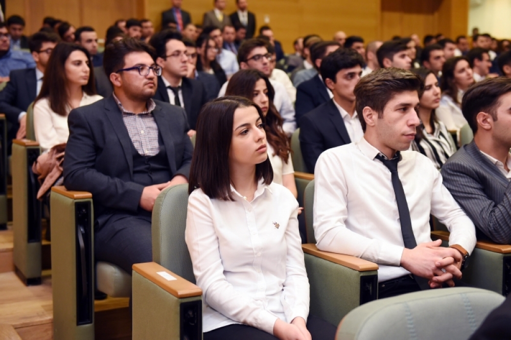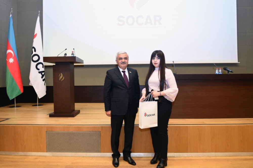 SOCAR Tower-də Azərbaycan Dövlət Neft Şirkətinin Azərbaycan gənclərinin inkişafı üçün həyata keçirdiyi Daxili Təqaüd Proqramı layihəsinin qaliblərinə plastik kartların verilməsi mərasimi keçiriib.