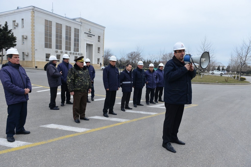 1 mart – Ümumdünya Mülki Müdafiə günü münasibətilə SOCAR-ın «Azərikimya» İB-nin Etilen-polietilen zavodunun ərazisindəki meydançada «Fövqəladə hallarda davranış qaydalarına düzgün əməl edilməsi və təhlükəsizliyin təmini hər bir işçinin məsuliyyətinin tərkib hissəsidir» mövzusunda obyekt mülki müdafiə təlimi keçirilib.