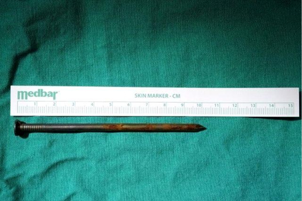 "İki sahil" Milli.Az-a istinadən xəbər verir ki, xəstəxanaya öskürək və ağır nəfəs almaq şikayəti ilə müraciət edən 91 yaşlı Keko Ateşin rentgen müayinəsi zamanı ağciyərində 10 sm uzunluğunda mismar olduğu ortaya çıxıb.