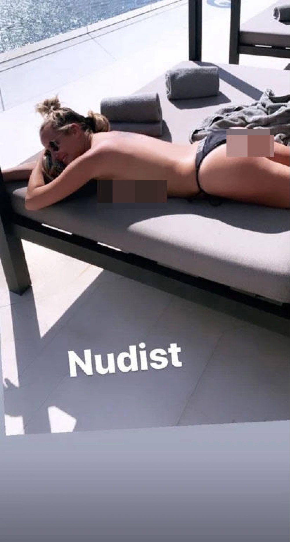 O, paylaşdığı fotoya "nudist" (nude (çılpaq) sözündən götürülüb, çılpaqlığı xoşlayan mənasını verir) şərhini yazıb.