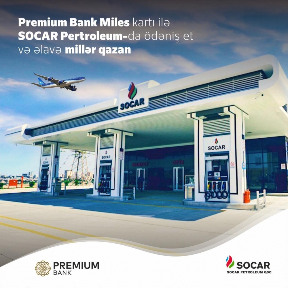 "Report" xəbər verir ki, "Premium Bank" ASC-nin Miles kartlarının sahibləri “SOCAR” yanacaqdoldurma məntəqələrində yanacağı alarkən əlavə mil balları qazanmış olacaqlar və toplanan milləri “Azərbaycan Hava Yolları” QSC-nin uçuş istiqamətləri üzrə biletə çevirmək imkanı əldə edəcəklər.