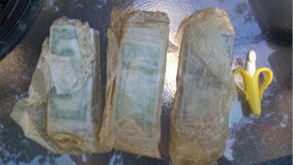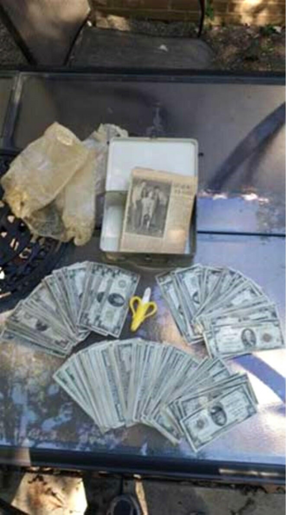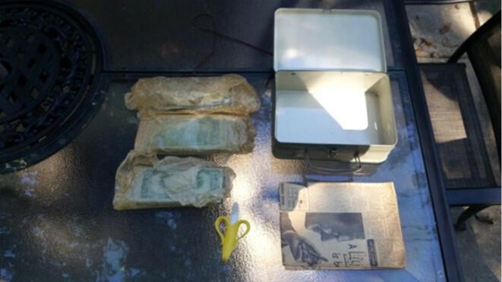 Çantadan köhnə çeklər, qəzetlər və 3 paket dollar (təxminən 23 min dollar) çıxıb.