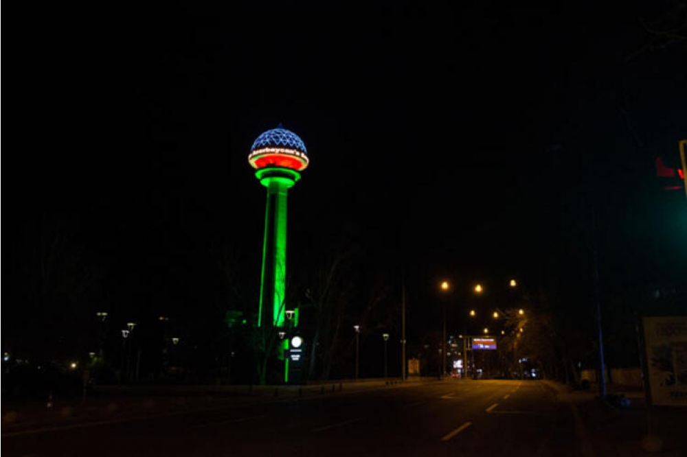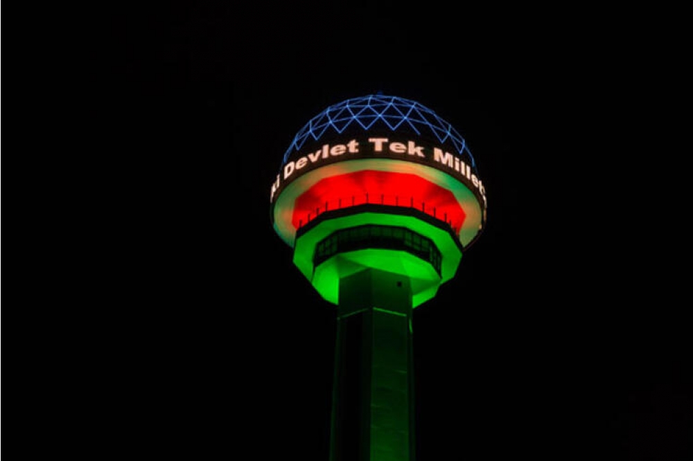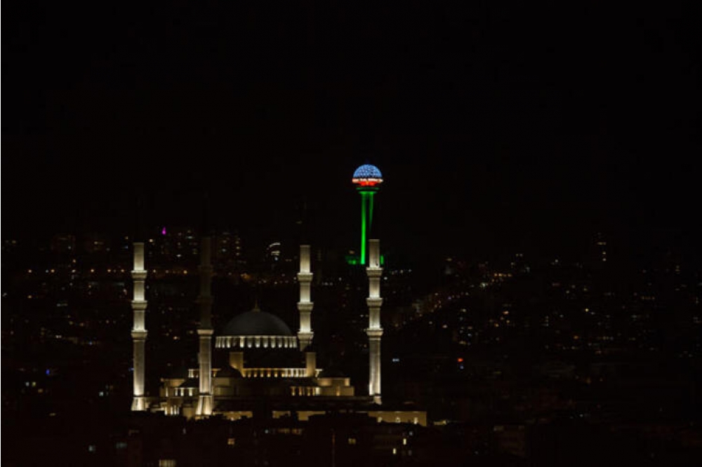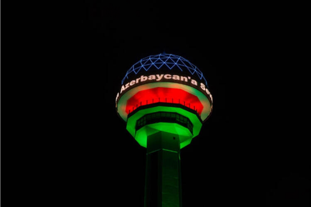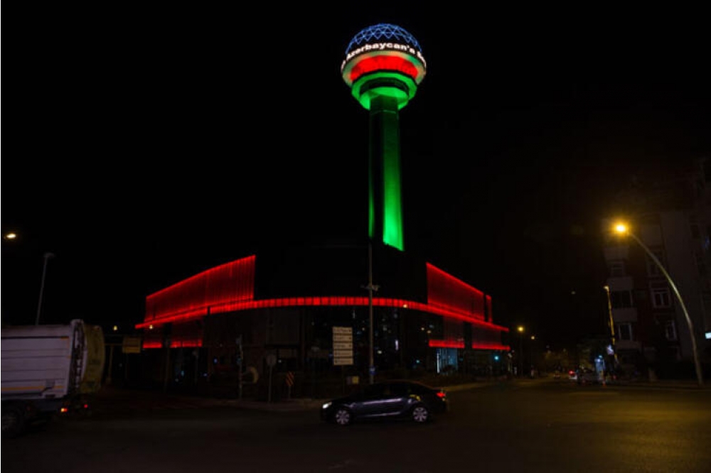 Türkiyənin paytaxtı Ankaranın rəmzi olan Atakule Azərbaycan bayrağının rəngləri ilə işıqlandırılıb.