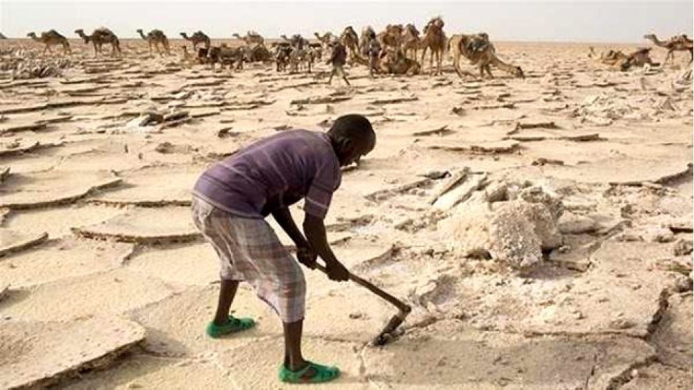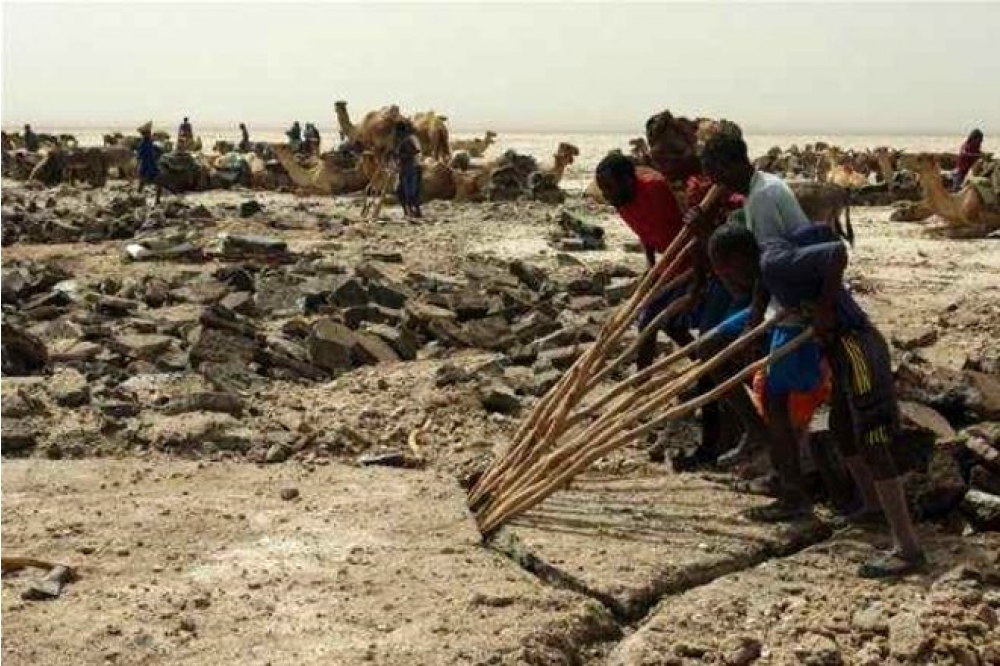 Efiopiyada 35 dərəcə istidə duz çıxaran işçilər.