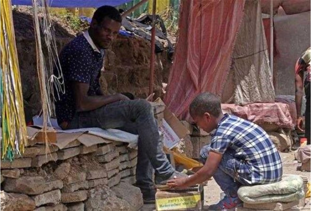 Üstəlik efiopiyalıların ana dilində ''List Row'' adı verilən ayaqqabı boyaqçıları gündəlik qazanc əldə etmək üçün bu işdə çalışırlar. Ölkədə ayaqqabı boyayan işçilərin çoxunu azyaşlı uşaqlar təşkil edir.