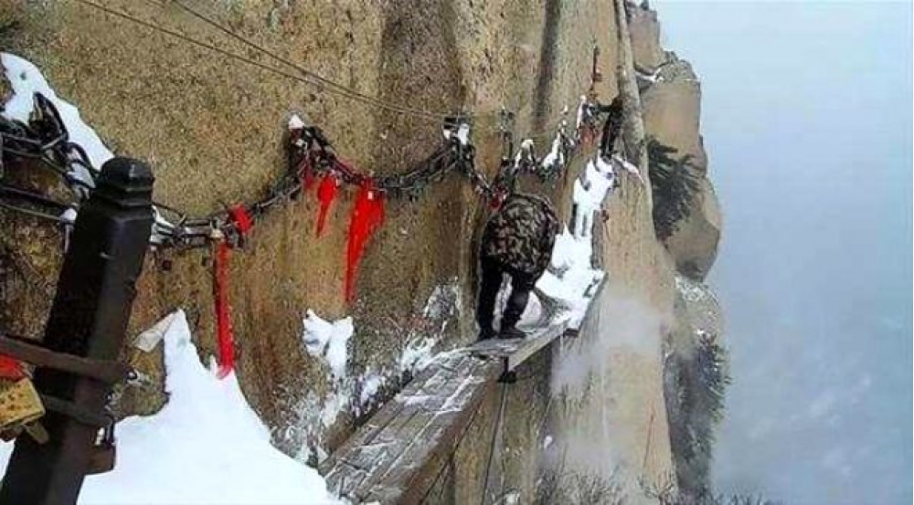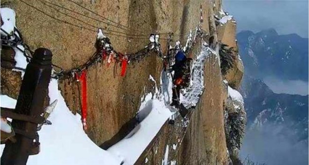 Çində yerləşən Hua şan dağı turistlərin ən çox ziyarət etdiyi yerlərdən biridir. Ancaq dağ yolu qarla örtülən zaman ərazini təmizləyən xüsusi işçilər fəaliyyət göstərir. //Ölkə.Az