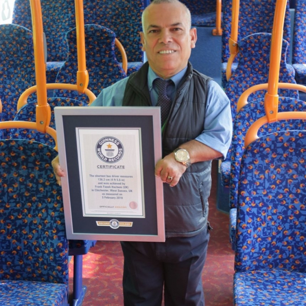 57 yaşlı Frank Heçem "Ən kiçik avtobus sürücüsü" kimi "Ginnesin Rekordlar Kitabı"na daxil olub. 1989-cu ildə sürücülük imtahanlarından uğurla keçən "balaca adam" elə o vaxtdan sürücü kimi fəaliyyət göstərməkdədir. Hal-hazırda onun boyu cəmi 136.2 santimetrdir. Qeyd edək ki, avtobus marşrutlarında Frank cəmi 3 ildir çalışır.