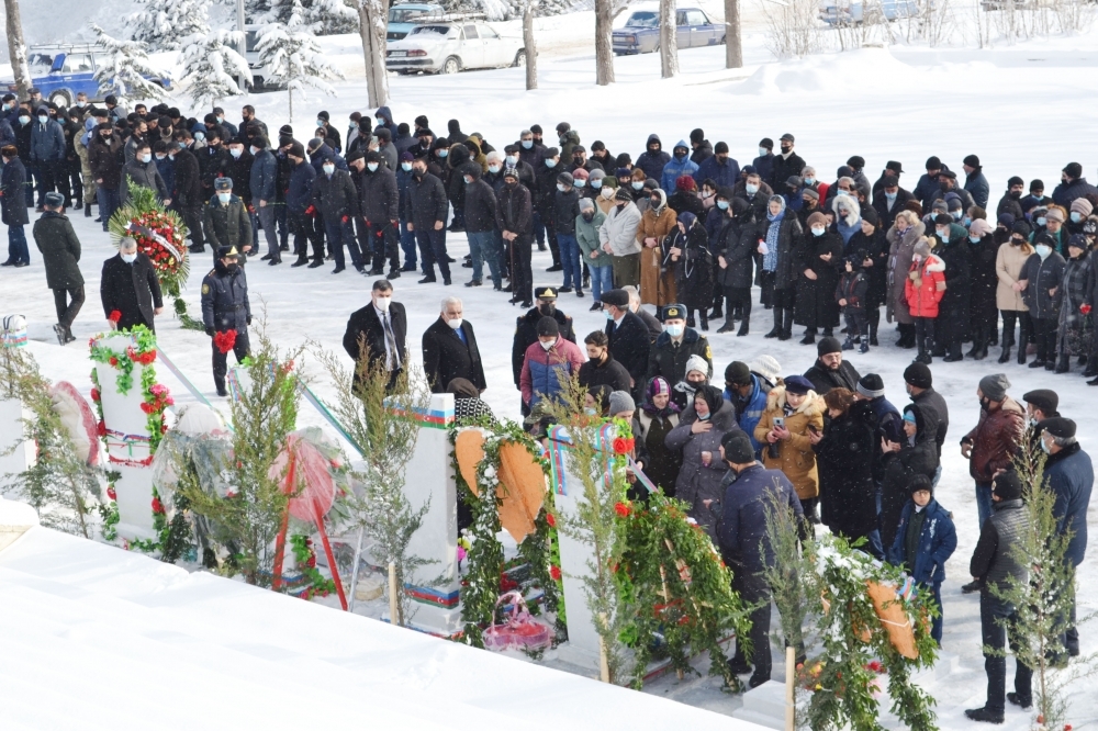 Rayon rəhbərliyi, hüquq-mühafizə orqanlarının əməkdaşları, hərbçilər, ictimaiyyət nümayəndələri və sakinlər qəmli musiqi sədaları altında şəhid məzarlarını ziyarət edib, tər güllər düzüblər.
