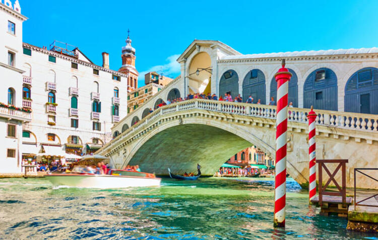 Dünyanın ən turizm şəhərlərindən biri olan Venesiya hər il milyonlarla qonağı qəbul edir. Bu turistlərin demək olar ki, hamısı Rialto körpüsü qarşısında şəkil çəkdirirlər. Böyük Kanalın dörd körpüsündən biri olan Rialtonun fərqləndirici xüsusiyyəti mağazalarla zəngin olmasıdır. 1591-ci ildə açılan Rialto körpüsünün memarı Antonio de Pontedir.Tək taglı inşa edilən körpünün içərisində çoxlu dükan var. İndiki formasını almadan əvvəl tarix boyu çoxsaylı dağıntılara məruz qalan körpü, həm də Venesiya Karnavalının keçirildiyi yerlərdən biridir.