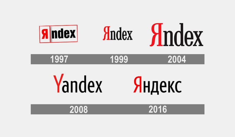 1993-cü ildə şirkətin yaradıcıları “Arkadia” şirkəti üçün bir tətbiq hazırladılar. Ad seçərkən, şirkətin texniki direktoru İlya Seqaloviç texnologiyanın mahiyyətini təsvir edən sözlərdən fərqli törəmələr yazdı. Nəticədə, "Yandex" seçimi ortaya çıxdı — “Yet Another Indexer” (başqa bir indeksator) “Yandex.ru” axtarış sistemi rəsmən 23 sentyabr 1997-ci il tarixində İlya Seqaloviç tərəfindən “Softool” sərgisində təqdim edilib.İlk variantda şirkətin adı “Яндекс” idi, hazırda isə həm kiril, həm latın əlifbası ilə yazılır.