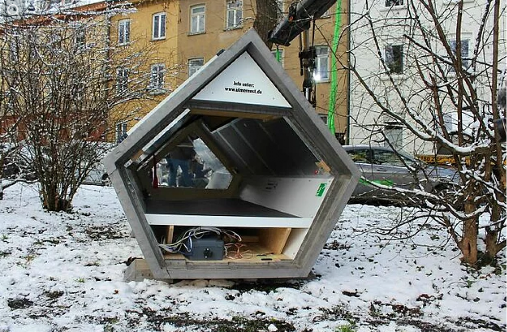 Almaniyanın Ulm şəhərində evsiz insanları gecə soyuqdan qorumaq üçün" yuxu kapsulaları" yaradıblar. Evsizlərə dəstək olmaq üçün və onları əsasən qış aylarında soyuqdan qorumaq üçün yaranan bu sosial proqram 6 sahibkar və texniki mütəxəssislər tərəfindən irəli sürülmüşdür . Həmin layihənin adı Ulmer Nest qoyulmuşdur. Mütəxəssislərin düşüncələrinə görə, "yuxu kapsulaları"nda insanlar rahat dincəlib, özlərini tam təhlükəsizlikdə hiss edəcəklər. Qeyri-adi kapsulalarda iki nəfərə qədər adam yerləşə bilər və ən əsası odur ki,insanların tam təhlükəsizliyini düşünən mütəxəssislər bura kilid də yerləşdiriblər.